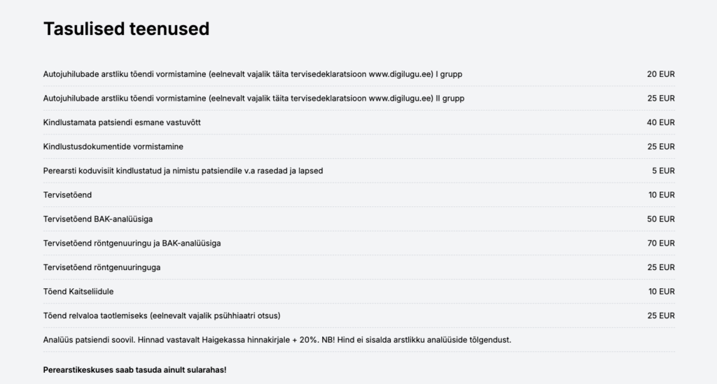 - Jätta välja toomata, mis teenused on Tervisekassa poolt rahastatud.